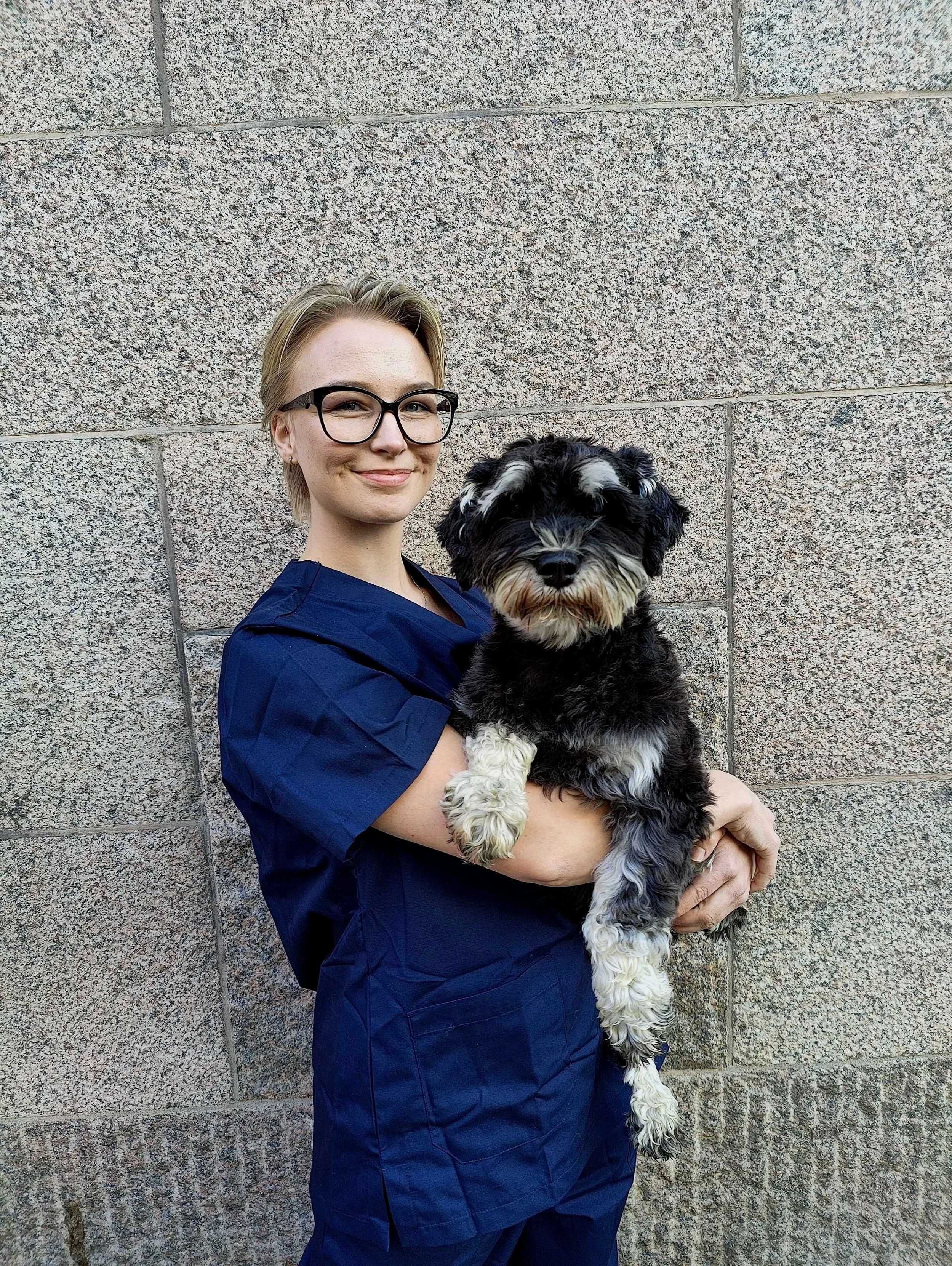 Hon brinner lite extra för häst- och smådjursmedicin och tycker att god kommunikation är nyckeln till att varje besök ska kännas tryggt och inkluderande för både djur och ägare.